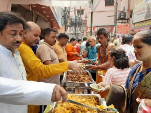वाराणसी। सावन के प्रथम सोमवार को सपाईयो ने श्रद्धालुओ को फलाहार वितरीत किया । सपा के वरिष्ठ नेता लक्ष्मीकांत मिश्रा उर्फ “किसमिस गुरू के नेतृत्व मे आदेश पैलेस के अधिष्ठाता आदेश मिश्रा एवं अदिती मिश्रा अपने गोलक्क के पैसे को एक वर्ष एकत्र कर प्रति वर्ष प्रत्येक सोमवार को सावन माह मे श्रद्धालुओ को फलाहार वितरीत करते है । सोमवार को बाॅफाटक स्थित आदेश पैलेस होटल के समीप सपा के पूर्व महानगर अध्यक्ष विष्णु शर्मा ( विश्वकर्मा ) ने समाजवादी साथीओ के साथ श्रद्धालुओ को फलाहार मे पकौड़ी एवं आलूदम के साथ सिकंजी बाॅटा। सुबह आठ बजे से फलाहार श्रद्धालुओ मे वितरण शुरू हुआ जो दोपहर तीन बजे तक अनवरत चलता रहा । फलाहार बाॅटने में सपा के पूर्व महानगर अध्यक्ष विष्णु शर्मा ( विश्वकर्मा ),आदित्य मिश्रा, पूर्व पार्षद विजय यादव “विज्जु”, बबलू तिवारी, ईमरान अहमद “बबलू”, राहूल यादव,गोपाल यादव,गोविंद यादव,रवि जैन,अंबरीश जायसवाल,अमिताभ दिक्षित,बसन्त गुप्ता,रविंद्र सिंह,सुमित यादव,कमल तिवारी,प्रदीप साहू अनुप मालवीय, आदि थे ।