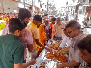 वाराणसी। सावन के पहले सोमवार को काशी में बाबा विश्वनाथ का दर्शन पूजन के लिए पधारे शिव भक्तों एवं कांवरियों के लिए अग्रवाल महासभा चैरिटेबल ट्रस्ट की ओर से चौक स्थित श्री राधा रमण मंदिर के सामने सेवा शिविर का आयोजन किया गया। सेवा शिविर में पधारे समस्त शिवभक्तों को सुबह से दोपहर तक फलाहार एवं शुद्ध जल पिला कर उनकी सेवा की गई।