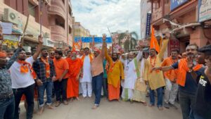 वाराणसी। शिव सैनिक और पाशपाणि विनायक सेवादल शुक्रवार को बाबा विश्वनाथ व माता अन्नपूर्णा की कार सेवा व जलाभिषेक और दर्शन पूजन किया । शिवसेना राज्य उप प्रमुख अजय चौबे के नेतृत्व में कारसेवा में उत्तर प्रदेश शिवसेना प्रमुख अभय द्विवेदी व कई जिलों के पदाधिकारी और पाशपाणि सेवा दल, साधु संत, महिलाएं व सन्यासी भी जलाभिषेक में शामिल हुए। विभिन्न क्षेत्रों से जूलूस का जत्था लक्सा रामलीला मैदान पर पहुंचकर श्री काशी विश्वनाथ मंदिर को प्रस्थान किया। इस अवसर पर धनंजय तिवारी,रमेश वधावन, सत्यम जायसवाल,धनंजय तिवारी, पवन सिंह चुन्नू, सौरभ जायसवाल, नन्हे चौबे, जित्तू श्रीवास्तव और भवानी सेना की महिलाएं शामिल थीं।