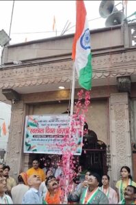 वाराणसी। महावीर मंदिर चौराहे (अर्दली बाजार) पर महावीर मंदिर, महावीर व्यायामशाला एवं कुंड निगरानी समिति के संयुक्त तत्वावधान में गुरुवार को स्वतंत्रता दिवस समारोह मनाया गया। ध्वजारोहण मंदिर के महंत शैलेन्द्र द्विवेदी “बब्बू महाराज” और पार्षद अशोक मौर्या ने किया। संचालन अजय श्रीवास्तव ने किया। चंद्रकला,शिवांकी आर्या, निधि सिंह, राखी मौर्या, संजू सोनकर, संतोष जायसवाल, शैलेश गुप्ता,उमेश,पंकज वर्मा,किशन चौहान समेत क्षेत्र के व्यापारी और नागरिक शामिल थे।