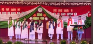 “भारत माता की जय बोलो, धरती से अंबर तक गूंजे स्वर, हर एक दिल में हो यह अरमान, देश हो मेरा सबसे महान”। गीत के बोलों को गायन के कलासाधक आशीष पीटर, सिस्टर सलीमा मिंज, अजीता, सिस्टर मोनिका, आंचल, प्रीति जॉन, शिवानी, चार्ल्स और अमजीत जोसेफ ने प्रस्तुत कर देश भक्ति की धारा बहा दीं। की-बोर्ड पर संगीत संयोजन आशीष पीटर ने किया।