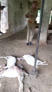 घटना कि सूचना मिलते ही लोगों की भीड़ जुट गई है उन्होंने सभी बकरियों कि कीमत दो लाख से अधिक बताया है।