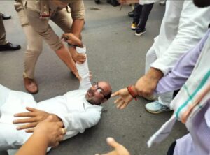 प्रयागराज में भी कांग्रेसी पुलिस कर्मियों से भिड़ गए।नोक झोंक धक्का मुक्की हुई पुलिस कर्मियों ने कांग्रेस कार्यकर्ताओं को दौड़ा लिया।