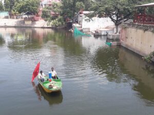वाराणसी। पंचकोश परिक्रमा के चतुर्थ पड़ाव शिवपुर में एक दिन पूर्व जिलाधिकारी एस. राजलिंगम द्वारा निरीक्षण के दौरान व्यवस्थाओं के प्रति नाराजगी व्यक्त की गई थी, तथा उन्होंने सभी धर्मशाला में टेंट व कुंड से उठ रही दुर्गंध को तत्काल दूर किए जाने का निर्देश दिया था, उसी क्रम में रविवार को नगर निगम के कर्मचारियों द्वारा कुंड के किनारे हरे परदे की जाली लगाई गई ताकि गंदगी किनारे रहे व उसे समय-समय पर निकालकर बाहर कर दिया जाए तथा नाव से पूरे कुंड में दवा का छिड़काव किया गया ताकि कुंड से दुर्गंध ना उठे।