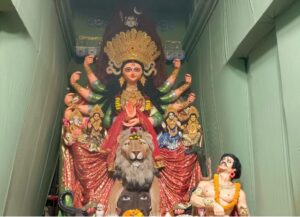 पंडाल में कोलकाता के काल्पनिक मंदिर की आकृति
