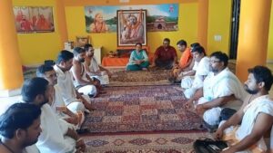 वाराणसी। गुरुवार को परमाराध्य परमधर्माधीश ज्योतिष्पीठाधीश्वर जगदगुरु शंकराचार्य स्वामिश्री जी महाराज द्वारा गौमाता को राष्ट्र घोषित कराने व गौकशी बन्द कराने हेतु चलाए जा रहे गौप्रतिष्ठा आंदोलन के सफलता हेतु श्रीविद्यामठ में 11 वैदिक आचार्यों द्वारा वेद पारायण किया गया।