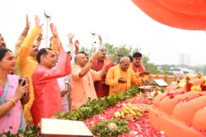 तत्पश्चात मुख्यमंत्री योगी आदित्यनाथ ने बाबतपुर मार्ग पर काजीसराय के पास स्थापित विशाल हनुमान प्रतिमा का पूजन अर्चन एवं परिक्रमा कर लोकार्पण किया।