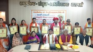 काशीराज डा विभूति नारायण सिंह अलंकरण से डॉ सचिन सनातनी,स्वामी मुक्तानंद सरस्वती, डॉ शालिनी राणा, श्वेता दास, श्रीमती बिंदु सिंह, आशुतोष शास्त्री ,राजेश शंकर श्रीवास्तव, शैलेश वर्मा आदि को अंगवस्त्रम एवं सम्मान पत्र देकर मुख्य अतिथि व समारोह अध्यक्ष ने सम्मानित किया ।