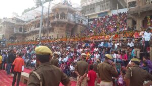 वाराणसी। लक्खा मेला एक नाग नथैया का मंचन तुलसी घाट पर डमरू के वादन, कालिया नाग का मर्दन कर भक्तों ने महाआरती कर वृन्दावन बिहारी लाल की उद्घोष किया।