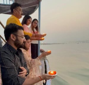 वाराणसी। उत्तर प्रदेश के स्टांप एवं न्यायालय पंजीयन शुल्क राज्य मंत्री (स्वतंत्र प्रभार) रविंद्र जायसवाल गुरुवार को छठ पूजा के पर्व पर बर्ती महिलाओं द्वारा सायकालीन अर्घ्य दिये जाने के दौरान नमो घाट से अस्सी घाट तक मोटर बोट द्वारा व्यवस्थाओं पर नजर रखते हुए निरीक्षण कर रहे थे। इस दौरान उन्होंने स्वयं भी अस्ताचल सूर्य की आराधना एवं दीपदान की।