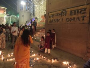 समिति के पदाधिकारियों व सदस्यों ने जानकी घाट पर रंगोली बनाई, आकर्षक दीपक सजाया, सांयकाल अंधेरा होते ही समुह में दीपक प्रज्वलित किया गया ।दीपक के प्रकाश से जानकी घाट का छटा अद्भुत व मनोरम हो गया।