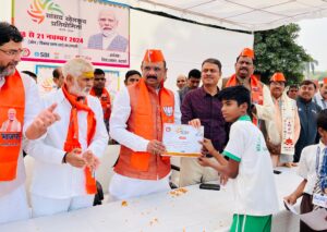 वाराणसी। महापौर अशोक तिवारी और जिलाधिकारी एस. राजलिंगम व मुख्य विकास अधिकारी हिमांशु नागपाल ने 18 से 21 नवंबर तक जिला प्रशासन और नगर निगम के तत्वाधान में आयोजित सांसद खेलकूद प्रतियोगिता-2024 के अन्तर्गत सोमवार यूपी इंटर कॉलेज में चल रहे विभिन्न खेलों में से एथलेटिक्स व कबड्डी खेल के विजेता खिलाड़ियों को प्रमाण पत्र वितरित किया और बच्चों का उत्साहवर्धन भी किया। बता दें कि सांसद खेल प्रतियोगिता जिले के विभिन्न विकाखण्डों/जोनों में आयोजित की जा रही है, जिसमे विभिन्न आयु वर्ग के प्रतिभागी प्रतिभाग कर रहें हैं।