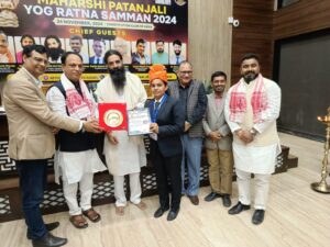 वाराणसी। अखिल भारतीय योग शिक्षक महासंघ की ओर से नई दिल्ली में बनारस की बेटी आचार्य डा.अंजना त्रिपाठी को पतंजलि योग रत्न सम्मान से सम्मानित किया गया। नई दिल्ली के कांस्टीट्यूशनल क्लब ऑफ़ इंडिया के डिप्टी स्पीकर सभागार में गत 24 नवंबर को आयोजित हुए सम्मान समारोह में बनारस से युवा योगाचार्य डॉ अंजना त्रिपाठी को “महर्षि पतंजलि योग रत्न सम्मान” से अलंकृत किया गया। यह सम्मान योग के क्षेत्र में योगाचार्यों द्वारा किए गए प्रयासों, योग के हित में किए गए कार्यों,योगाचार्यों (योग वीर / वीरांगनाओं) को प्रदान किया जाता है। सम्मानित होने पर हुनर ए बनारस ने अंजना को बधाई दी है।समारोह में विश्व प्रसिद्धि प्राप्त प्रधान योगाचार्य स्वामी अमित देव महाराज, राजर्षि आचार्य पवन दत्त मिश्र महाराज, चीफ़ एक्जीक्यूटिव ऑफिसर पीआरसीबी डॉ एसपी मिश्रा, मुरारजी देसाई नेशनल इंस्टिट्यूट ऑफ़ योग के प्रभारी कार्यक्रम अधिकारी योग थैरेपी आईएन आचार्य, योगगुरु मंगेश त्रिवेदी आदि थे।