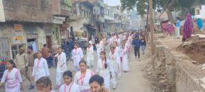 आजमगढ़।राष्ट्र सेविका सीमित गोरक्ष प्रांत इकाई ने सात दिवसीय कार्यक्रम का आयोजन किया गया ।इस मौके पर नगर जगह जगह राष्ट्र सेविका समिति की बहनों का पुष्पवर्षा करके स्वागत किया गया। राष्ट्र सेविका समिति गोरक्षप्रांत के आर्यमगढ़ की विभाग कार्यवाहिका और जिला कार्यवाहिका के नेतृत्व में पथ संचलन गुरुवार को डीएवी इंटर कॉलेज से निकलकर अग्रसेन चौक होते हुए मातबरगंज, पुरानी कोतवाली दलाल घाट शहर के विभिन्न मार्गों से होते हुए वापस डीएवी इंटर कॉलेज पहुंचकर सम्पन्न हुआ। राष्ट्र सेविका समिति गोरक्षप्रांत द्वारा 28 दिसंबर से 3 जनवरी तक सात दिवसीय प्रारंभिक शिक्षा वर्ग का आयोजन शेखर सोशल महिला महाविद्यालय सम्मोपुर आर्यमगढ में चलेगा। प्रशिक्षण वर्ग में प्रांत की कुल 150 बहनें प्रशिक्षण ले रही हैं। इसमें 25 शिक्षिका एवं 28 व्यवस्था प्रमुख बहनें शामिल हैं। वर्ग में सेविकाओं को दंड संचालन, नियुद्ध, गणसमता के प्रशिक्षण के साथ योगासन, आत्मरक्षा व बौद्धिक कार्यक्रम भी हो रहा है। प्रशिक्षण वर्ग कार्यक्रम का उद्देश्य नारी को अपनी शक्ति की अनुभूति कराना है। खेल, व्यायाम, योगासन और प्रेरक कहानियों का प्रभाव स्वयंसेविकाओं के मन पर पड़ता है। इससे उनके व्यक्तित्व का विकास होता है। शोभायात्रा में इस वर्ग की वर्गाधिकारी अमिता तिवारी, विभाग कार्यवाहिका डा. वंदना त्रिपाठी, जिला कार्यवाहिका अंकिता सिंह, शुभ्रा, विभाग प्रचारक, जिला प्रचारक, अरुण पाल, अजय अग्रवाल, रित्विक जयसवाल, अभय दत्त गोंड, शैलेंद्र अग्रवाल, सत्य विजय राय सहित बड़ी संख्या में राष्ट्रीय स्वयंसेवक संघ के समस्त पदाधिकारी व स्वयंसेवक उपस्थित रहे।