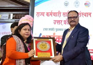 वाराणसी। लखनऊ विश्वविद्यालय के मालवीय सभागार में रविवार को आयोजित राज्य कर्मचारी साहित्य संस्थान, उत्तर प्रदेश के रजत जयंती/पुरस्कार समारोह में वाराणसी की प्रोफेसर रचना शर्मा को उत्तर प्रदेश के उपमुख्यमंत्री बृजेश पाठक द्वारा उत्तर प्रदेश शासन की साहित्यिक योजना के अन्तर्गत श्यामसुन्दर दास पुरस्कार द्वारा पुरस्कृत किया गया। उन्हें पुरस्कार स्वरुप मान-पत्र एवं 100000/- रुपये की धनराशि प्रदान की गई। इस समारोह में 24 साहित्यकारों को पुरस्कृत किया गया।