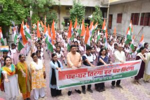 वाराणसी। आजादी के 75 वी वर्षगांठ के अवसर पर आजादी के अमृत महोत्सव के तहत हमारे देश के यशस्वी प्रधानमंत्री माननीय नरेंद्र मोदी जी के आवाहन पर 13 से 15 अगस्त 2022 को स्पेशल मोमेंट घर-घर तिरंगा हर-घर तिरंगा का आयोजन किया गया था । जिसमें हमारे देश के सारे भारतवासियों ने हर्षोल्लास और जोश-खरोश के साथ इस महान उत्सव को शानदार ढंग से यादगार के रूप में मनाया था । उसी पल को स्वतंत्रता दिवस के 76 वी वर्ष पूरे होने पर पुनः हर घर तिरंगा घर-घर तिरंगा के रूप में मनाने की अपील के साथ सामाजिक संस्था सुबह-ए-बनारस क्लब के बैनर तले संस्था के अध्यक्ष मुकेश जायसवाल, लक्ष्मी हॉस्पिटल के प्रबंध निदेशक डॉ.अशोक कुमार राय, कॉलेज की प्रधानाचार्या डॉ. प्रियंका तिवारी ,उपाध्यक्ष अनिल केसरी, कोषाध्यक्ष नन्दू जी टोपी वाले के नेतृत्व में मैदागिन स्थित श्री हरिश्चंद्र बालिका इंटरमीडिएट कॉलेज के परिसर में शुक्रवार को छात्राओं के हाथ में राष्ट्रध्वज तिरंगा देकर यह शपथ दिलाया गया। तिरंगे के प्रति प्यार व सम्मान दिखाने के लिए वह 13 से लेकर 15 अगस्त तक अपने अपने घरों पर तिरंगा फहरायेगी या अपने घर पर लगाएंगी। तथा जागरूकता के तहत वह इसके लिए दूसरों को भी प्रेरित करेंगी। उपरोक्त अवसर पर बोलते हुए संस्था के अध्यक्ष मुकेश जायसवाल,डॉ अशोक कुमार राय, डॉ प्रियंका तिवारी,उपाध्यक्ष अनिल केसरी, कोषाध्यक्ष नन्दू जी टोपी वाले ने कहा कि बच्चों के सार्थक प्रयास और हम सबके पहल से ही घर-घर तिरंगा फहराने का अभियान माननीय प्रधानमंत्री जी के सपनों को प्रत्येक वर्ष साकार करता रहेगा ।
