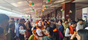 वाराणसी। काशी तमिल संगमम 3.0 के अंतर्गत तमिलनाडु से आए स्वयं सहायता समूह, मुद्रा ऋण लाभार्थी, प्रचारक के लोगों का तिलक लगाकर और फूलों की माला पहनाकर ढोल नगाणों के साथ बनारस रेलवे स्टेशन पर भव्य स्वागत किया गया। उन पर पुष्प वर्षा भी की गई । स्टेशन पर जिला पंचायत अध्यक्ष पूनम मौर्या एवं जिलाधिकारी एस. राजलिंगम ने स्वागत समारोह की अगवानी की।