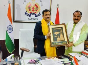 वाराणसी। व्यापारियों का एक प्रतिनिधि मण्डल प्रदेश मंत्री व्यापार मंडल उ प्र डॉ अखिलेश सिंह के नेतृत्व में पुलिस कमिश्नर मोहित अग्रवाल से मिला। गत माह कुम्भ आयोजन, काशी विश्वनाथ धाम दर्शन, सुगम यातायात प्रबंधन के लिए अंग वस्त्रम एवं स्मृति चिन्ह देकर सम्मानित किया और बधाई दी। प्रतिनिधि मण्डल में डॉ अखिलेश सिंह प्रदेश मंत्री, प्रदीप राय, संजय कुमार राय, पवन सिंह, अमित राय, राहुल प्रकाश,जय प्रकाश सेठ, अमित कपूर आदि लोग शामिल थे।
