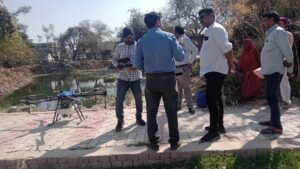 तालाबों में ड्रोन तकनीक से एण्टीलार्वा का छिड़कॉव