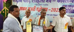 वाराणसी।नादान परिंदे साहित्य मंच व कविताम्बरा के संयुक्त तत्वावधान में लंका स्थित दी हंगर रेस्टोरेंट्स में सावन कजरी महोत्सव 2023 बड़े ही उल्लाशपूर्ण माहौल में संपन्न हुआ ।समारोह के मुख्य अतिथि पद्मश्री अजीता श्रीवास्तव व विशिष्ट अतिथि विष्णु भूषण मिश्र,अपर आयुक्त प्रशासन ,वाराणसी, चंद्रभाल सुकुमार,पूर्व जिला जज डॉ दीपक सिंह डायरेक्टर ( ध्येयIAS) डॉ ओ पी प्रजापति, कर्नल गोविंद सिंह, अरविंद कुमार जोशी,प्रकाश कुमार श्रीवास्तव गणेश जी रहे । सभी सम्मानित अतिथियों को स्मृति चिन्ह , मोमेंटो , शाल , रुद्राक्ष की माला , गीता , देकर नादान परिंदे साहित्य मंच अध्यक्ष डॉ सुबाष चंद्र ने सम्मानित किया।