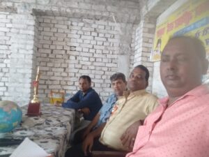 आये अतिथिगण का विनय कुमार श्रीवास्तव स्वागत तथा माल्यार्पण से विक्रम कुमार ने की।