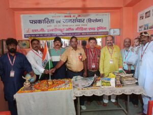 कार्यक्रम के मुख्य अतिथि आईएजे के राष्ट्रीय अध्यक्ष डॉ कैलाश सिंह विकास, विशिष्ट अतिथि राष्ट्रीय महामंत्री मो० दाऊद एव राष्ट्रीय संगठन मंत्री आनंद कुमार सिंह अन्ना ने झंडारोहण किया।तथा राष्ट्रगान किया।