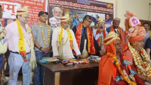 स्वागताध्यक्ष डा. राजकुमार गुप्ता ने नवसंवत्सर अभिनन्दन सम्मान -2025 , अंगवस्त्र, लाली पाप आदि विभिन्न क्षेत्रों से जुड़े लोगों को भेंट करके बेमेल विवाह को विवादास्पद होने पर अपनी खुशियों का इजहार किया।
