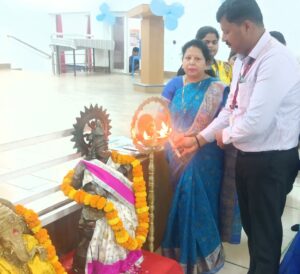 कार्यक्रम की शुरुआत मां सरस्वती को पुष्प और दीप प्रज्वलन से हुई।