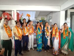 चुनाव अधिकारी के चुनाव परिणाम की घोषणा करते ही सोसाइटी के उपस्थित जनों ने माला पहनाकर कर स्वागत किया। तथा सभी पदाधिकारियों को बधाई दी।