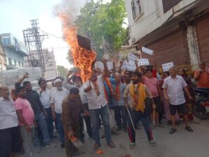 वाराणसी।पश्चिम बंगाल में हिंदुओ पर अत्याचार से त्रस्त होकर बनारस के कई हिंदू संगठन ने वार्ड नंबर 91 के पार्षद चंद्र नाथ मुखर्जी के नेतृत्व में पांडेहवेली स्थित गुरु कृपा कॉलोनी से जलूस निकालकर बंगाली टोला कॉलेज के सामने आकर बंगाल के मुख्य मंत्री ममता बनर्जी का पुतला दहन किया गया।
