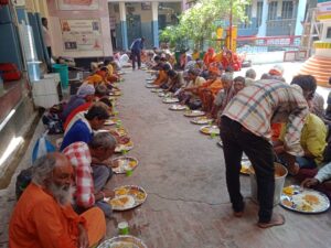 वाराणसी।दक्षिण भारत से आए हुए तीर्थयात्री जेपी राव ने अपने धर्म पत्नी स्वर्गीय जीव शोभा लक्ष्मी के याददाश्त में मानसरोवर स्थित श्री राम तारक आंध्रा आश्रम में दोपहर को नारायण भोज कराया।