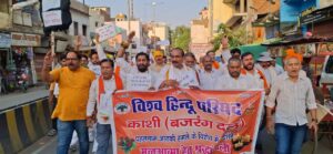 वाराणसी। कश्मीर के पहलगाम में विगत दिनों हुई आतंकी घटना और उसमें देशवासियों की हुई क्रूर हत्या के विरोध में विश्व हिन्दू परिषद,बजरंग दल काशी महानगर व जिला की आक्रोश रैली इंगलिशिया लाइन स्थित कार्यालय(हिन्दू भवन) से निकली गई। जिसमें परिषद के पदाधिकारी कार्यकर्ता पाकिस्तान और आतंक के खिलाफ उग्र नारे लगाते हुए नारे लिखे पम्पलेट लेकर अपना विरोध और दुख व्यक्त कर रहे थे। नारे लगाते विहिप के लोग फुलमंडी होते हुए मलदहिया के पटेल चौराहे पर पहुंचे और आतंक रुपी पाकिस्तान के पुतले की पिटाई के बाद उसका दहन किया। वक्ताओं नें कहा कि अब आतंकवाद ने पराकाष्ठा पार कर दी है। इस बार की घटना नें देश की सहनशक्ति को हिला कर रख दिया है। हम भारत सरकार से मांग करते हैं कि अब सैन्य कार्यवाही ही पाक के विरुद्ध की जाए। इस बर्बर आतंकी कृत्य का जवाब भी कठोर से कठोर होना चाहिए। कार्यक्रम में यतींद्रानंद महाराज जूना अखाड़ा,कन्हैया सिंह,राजेश मिश्रा,राजेश पांडेय,विनय जी,पवन पाठक,विपुल कुमार पाठक,देवेश,राज कुमार जी,चंद्रशेखर,रमेश मिश्रा,अजीत चौरसिया, सुनील मौर्या,संदीप भारती,शेरु बाबा,अभय प्रताप,नईम सिद्धिकी,सावन कुमार,विक्रम सिंह,सोनू केसरी,आकाश साहनी आदि शामिल हुए।