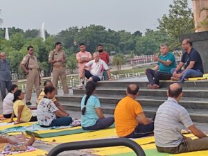 लखनऊ।लखनऊ स्थित जनेश्वर मिश्र पार्क के मूर्ति स्थल पर प्रतिदिन की भाँति योगा किया गया।प्रातः योग स्थल पर उत्तर प्रदेश सरकार मंत्री धर्मवीर, प्रजापति (होमगार्ड, एवं कारागार, मंत्री)भी शामिल हुए।