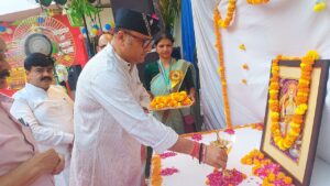 कार्यक्रम की शुरुआत अतिथियों द्वारा माँ सरस्वती के चित्र पर माल्यार्पण व दीप प्रज्ज्वलित किया गया।