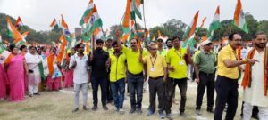 तिरंगा यात्रा में शामिल लोग जहा एक ओर हाथों में तिरंगा लहरा रहे थे वही विभिन्न विद्यालयों के छात्र छात्राएं 250-250 मीटर लंबे तिरंगे को हाथों में लिए भारत माता की जय जयकार लगाते चल रहे थे।