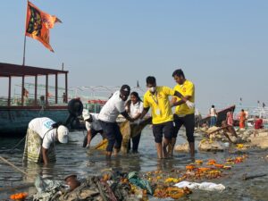 वाराणसी। राष्ट्रीय स्वच्छ गंगा मिशन के तहत राजघाट पर चलाए जा रहे स्वच्छता अभियान में मीरा फाउंडेशन और सेना के जवानों, गंगा टास्क फोर्स, नमामि गंगे विचार मंच , सामाजिक संस्थाओं की भागीदारी ने यह सिद्ध कर दिया कि जब हम सब एकजुट होते हैं, तो परिवर्तन संभव होता है। गंगा सिर्फ एक नदी नहीं, हमारी संस्कृति, आस्था और जीवन की धारा है। इस अभियान में गंगा तट को पॉलीथिन मुक्त बनाने हेतु किया गया श्रमदान अत्यंत सराहनीय रहा। सेना के जवानों व गंगा टास्क फोर्स द्वारा सतत पेट्रोलिंग और समर्पण, तथा सामाजिक कार्यकर्ताओं की ऊर्जा से यह जनजागरण अभियान और भी प्रभावी बन सका। मीरा फाउंडेशन की ओर से सफाई कार्य हेतु हैंड ग्लव्स प्रदान किया गया। इस अवसर पर सूबेदार देवेंद्र बसनेट, सूबेदार जगदीश चंद, जय विश्वकर्मा, शिवांगी पांडेय, दीपशिखा, अजय कन्नौजिया, विजय टाटा, दिवाकर प्रसाद, अतिंद्र त्रिपाठी, भीम सिंह, टीपू, अखिलेश, इंदु आदि थे।
