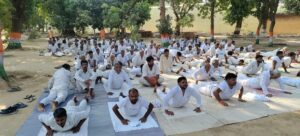 वाराणसी। केंद्रीय कारागार वाराणसी में 11वें अंतरराष्ट्रीय योग दिवस के उपलक्ष्य में गुरुवार को योग प्रोटोकॉल के अंतर्गत एक विशेष योग प्रशिक्षण कार्यक्रम का आयोजन किया गया। इस कार्यक्रम का संचालन योग प्रशिक्षक मनीष कुमार पांडेय और योग सहायक रीता जायसवाल ने किया। दोनों प्रशिक्षक स्वामी विवेकानंद जिला चिकित्सालय योग वेलनेस सेंटर, भेलूपुर, वाराणसी से संबद्ध हैं।