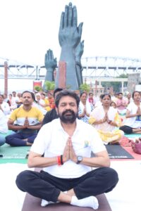 गुरुवार को अलसुबह नमो घाट पर 11वीं अंतर्राष्ट्रीय योग दिवस सप्ताह के पांचवें दिन इस वर्ष के थीम “एक पृथ्वी एक स्वास्थ्य के लिए योग” के उद्देश्य से आयोजित कार्यक्रम में उत्तर प्रदेश के आयुष, खाद्य सुरक्षा एवं औषधि प्रशासन राज्य मंत्री (स्वतंत्र प्रभार) डा. दयाशंकर मिश्र ‘दयालु’ ने एनडीआरएफ के जवानों के साथ लगभग 250 से ज्यादा स्थानीय लोगों के सत्यभोग किया। कार्यक्रम के दौरान योगाचार्य अभय स्वाभिमानी तथा योगाचार्य विनोद गुप्ता द्वारा लोगों को योग का महत्व बताया गया।