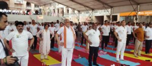 वाराणसी। नागरिक सुरक्षा के वार्डेन और स्वयंसेवकों ने श्री काशी विश्वनाथ धाम में विश्व योग दिवस पर योग किया। श्री विश्वनाथ धाम में योग दिवस पर आयोजित कार्यक्रम में डिवीजनल संजय कुमार राय के नेतृत्व में नागरिक सुरक्षा कलेक्ट्रेट प्रखंड के वार्डेन और स्वयंसेवकों ने भी भाग लिया और नियमित योग करने का संकल्प लिया। मुख्य अतिथि प्रदेश के वित्त एवं संसदीय कार्य एवं प्रभारी मंत्री सुरेश कुमार खन्ना ने शुभारंभ किया। इस मौके पर एमएलसी हंस राज विश्वकर्मा, कमिश्नर , जिलाधिकारी सत्येन्द्र कुमार, अपर जिलाधिकारी नगर आलोक कुमार वर्मा, डिप्टी कंट्रोलर जितेन्द्र देव सिंह समेत अन्य प्रशासनिक अधिकारी थे। इस मौके पर स्क्रीन पर प्रधानमंत्री का योग दिवस लाइव कार्यक्रम का प्रसारण भी किया गया। योग दिवस पर शामिल सैकड़ों की संख्या में लोगों ने योग किया।