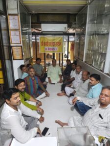 बैठक में रवि सर्राफ, अमनदीप सिंह, जतिन रस्तोगी, पंकज सर्राफ, पीयूष गुप्ता, संजय अग्रवाल, श्री कुमार दबे, राजा सेठ, अरुण उपाध्याय, मोहन अग्रवाल, मायाशंकर सेठ, उमेश उपाध्याय, अनिल चंचल, गणेश लाल कसेरा, किशोर सेठ, पवन मिश्रा आदि शामिल रहे।