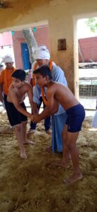 वाराणसी।।नाग पंचमी के पावन अवसर पर सिगरा स्थित सोनिया अखाड़े पर दंगल की परम्परा निभायी गयी। विगत 160 वर्षों से चल रही इस परम्परा में सोमवार को दर्जन भर से अधिक पहलवानों ने सहभागिता की। इसके पूर्व अखाड़े के ही बड़े पहलवान रहे स्व. परी सरदार, स्व. बाउल सरदार, स्व. रामजी पहलवान, स्व. प्रताप पहलवान आदि को याद कर नमन किया गया उसके बाद विभिन्न भारवर्ग में कुश्ती दंगल का शुभारंभ हुआ। वहीं वरिष्ठ पहलवानों ने जोड़ी, गदा फेर कर हुनर का प्रदर्शन किया।