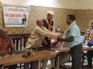 वाराणसी। राम कटोरा स्थित एक रेस्टोरेंट में जनकल्याण परिषद द्वारा आयोजित समारोह में जनकल्याण परिषद के प्रदेश अध्यक्ष गंगा सहाय पाण्डेय व समाज सेवी डा सतीश कसेरा ने अंग वस्त्र व स्मृति चिन्ह देकर सम्मानित किया।