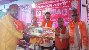 चन्दौली। जिला अंतर्गत पीडीयू.नगर निवासी अस्मिता नाट्य संस्थान के संस्थापक/महासचिव, नाट्य रंगकर्मी विजय कुमार गुप्ता के मानव हितार्थ बहुमुखी प्रतिभा को दृष्टिगत रखते हुए राष्ट्रवादी हिन्दू शक्ति वाहिनी के राष्ट्रीय अध्यक्ष प्रदीप कुमार गुप्ता – मुख्य अतिथि, जिम्बाबे के मानद कुलपति डॉ. सौरभ पाण्डेय – अतिविशिष्ट के गरिमामयी उपस्थिति में प्रख्यात ग़ज़लकार एवं कवि सिद्धनाथ शर्मा सिद्ध के अध्यक्षता में अखिल भारतीय लेखक कवि कलाकार परिषद् के संस्थापक कवि इन्द्रजीत तिवारी निर्भीक के प्रमुख संयोजन/ संचालन में आयोजित वाराणसी महानगर के तेलियाबाग अथर्व फेमिली सभागार में आयोजित बम-बम काशी काव्य महाकुंभ एवं स्मृति सम्मान समारोह में बम-बम काशी स्मृति सम्मान नाट्य रंगकर्मी विजय कुमार गुप्ता को भेंट किया गया। चन्दौली रंग महोत्सव सहित अनेकों सराहनीय गतिविधियों में निःस्वार्थभाव से निरंतर रहने वाले विजय कुमार गुप्ता सदैव हरफनमौला सर्वजन -हिताय, सर्वजन -सुखाय रात-दिन लगे रहते हैं। ऐसे श्रेष्ठ व्यक्तित्व को भारत वर्ष के विभिन्न क्षेत्रों से सैकड़ों अब तक सम्मान मिल चुका है।