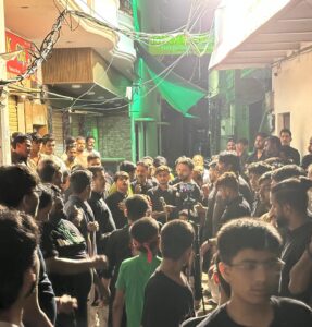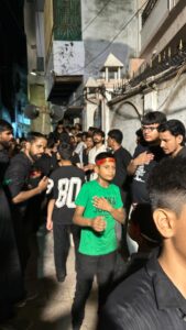 वाराणसी। हर साल की तरह इस वर्ष भी सैय्यद जियारत हुसैन के अंर्दली बाजार तार गली स्थित इमामबारगाह से 8वीं मोहर्रम दुलदुल अलम, ताबूत का जुलूस शुक्रवार को देर रात 11 बजे निकला। संयोजक इरशाद हुसैन “शद्दू” के अनुसार जुलूस अपने कदीमी (पुराने) रास्ते से होकर उल्फत बीबी हाता स्थित स्व.मास्टर जहीर साहब के इमामबाङा पर समाप्त हुआ। जुलूस में अंजुमन इमामिया नौहा व मातम करती चलरही थी। जुलूस में इरशाद हुसैन सद्दू,जफर अब्बास, दिलशाद ,जीशान,फिरोज, अयान,अमान,शाद,अरसान,दिलकश,मीशम आदि थे।