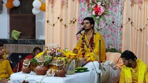 कथा के अंत में जजमान अरविंद त्रिपाठी ने भागवत पोथी की आरती कर भक्तों में प्रसाद का वितरण किया।