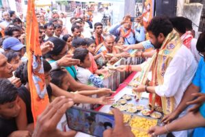 शिविर के उद्धघाटन के पश्चात् आयुष मंत्री डॉ दयाशंकर मिश्र ‘दयालु’ ने स्वयं अपने हाथों से शिवभक्तों, श्रद्धालुओं को फलाहार वितरित किया। इस अवसर पर आयोजकों का उत्साह वर्धन करते हुए आयुष मंत्री डॉ दयालु ने कहा कि वाराणसी सिटी ट्रांसपोर्ट एसोसिएशन का यह सेवा प्रयास काशी की उस सांस्कृतिक परंपरा का हिस्सा है, जिसमें भक्ति के साथ-साथ सेवा को भी सर्वोपरि माना जाता है। इस आयोजन ने समाज में समर्पण और सहयोग की भावना को प्रोत्साहित किया है और आने वाले समय में ऐसे आयोजनों के माध्यम से अधिकाधिक लोगों तक लाभ पहुंचाने की प्रेरणा दी है। वाराणसी सिटी ट्रांसपोर्ट एसोसिएशन विशेश्वरगंज के अध्यक्ष रविन्द्र सिंह ने इस अवसर पर कहा कि इस वर्ष पहली बार हमारे संगठन के सभी पदाधिकारियों ने मिलकर श्रावण मास में फलाहार वितरण शिविर का आयोजन किया है। उन्होने कहा कि सावन जैसे पावन मास में शिवभक्तों की सेवा करना हम सभी के लिए सौभाग्य की बात है। उन्होंने संगठन के सभी सदस्यों का आभार जताया जिन्होंने समय, संसाधन और श्रम के माध्यम से इस सेवा कार्य में पूर्ण सहभागिता दी। अध्यक्ष रविन्द्र सिंह ने यह भी अपेक्षा जताई कि आने वाले वर्षों में भी इसी प्रकार के सेवा कार्य होते रहें और संगठन समाज के हित में सकारात्मक भूमिका निभाता रहे।