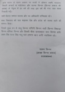 उक्त अवसर पर किन्नर समाज के पदाधिकारी व सदस्य गण शामिल रहे।