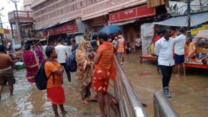 दशाश्वमेध घाट के किनारे क्षेत्र के गलियों में गंगा पानी प्रवेश करना धीरे धीरे शुरू हो चुका है।जिससे क्षेत्रीय में अफरा तफरी मची हुई है।