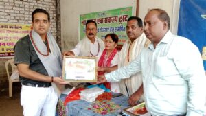 प्रशांत कुमार गौतम (समाजसेवा), दिलीप कुमार प्रजापति (समाजसेवा) को प्रमाण पत्र,अंग वस्त्र, रूद्राक्ष माला, स्मृति चिन्ह देकर सम्मानित किया। तथा उज्जवल भविष्य की कामना किया।