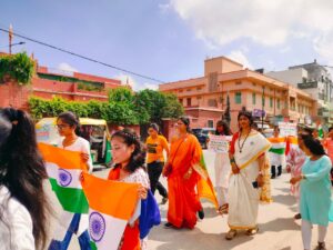विद्यार्थियों ने राष्ट्रीय उत्सव के महत्व को बताते हुए स्लोगन लिखकर, नारा बोलते हुए तथा शहीदों को नमन करते हुए रैली का शुभारंभ किया।
